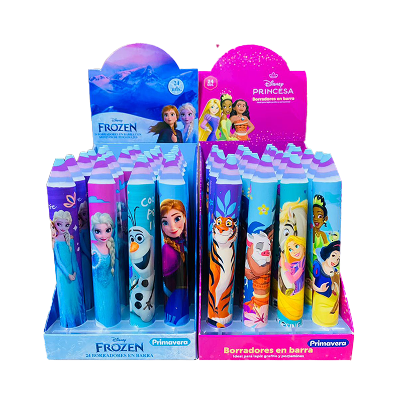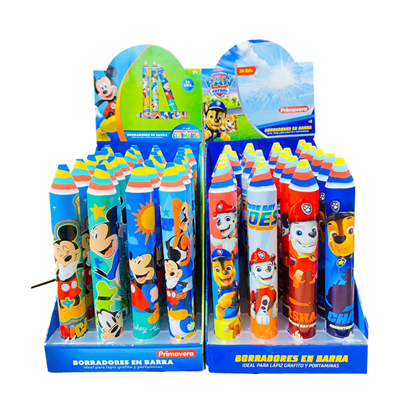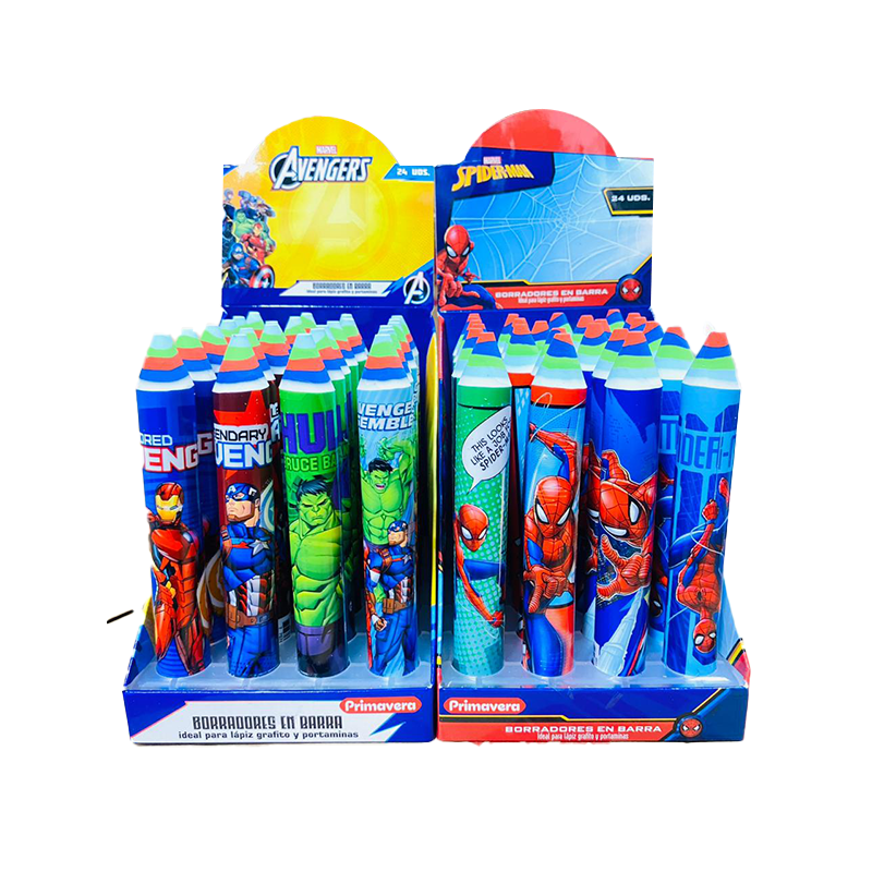 El Borrador en barra de personajes Primavera combina funcionalidad y diseño gracias a su formato tipo lápiz jumbo, que ofrece un agarre cómodo y un borrado suave sin maltratar el papel. Cada borrador viene recubierto con divertidos diseños de personajes de Disney y Marvel, ideales para niños y niñas que aman llevar sus héroes y favoritas al colegio. Su tamaño grueso y duradero permite un uso prolongado, perfecto para tareas diarias, actividades escolares y kits de útiles. Además, su presentación colorida lo convierte en un accesorio llamativo dentro de la cartuchera. ¡Una vez realices tu compra te contactaremos para que elijas el motivo de tu borrador!