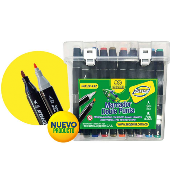Los Marcadores doble punta x80 Zeppelin son el set ideal para ilustradores, estudiantes y amantes del dibujo que buscan colores intensos, trazos precisos y una experiencia creativa profesional. Cada marcador incluye una punta fina para detalles y una punta biselada para trazos amplios, permitiéndote trabajar con versatilidad en proyectos escolares, artísticos o manualidades. Este estuche de 80 colores ofrece una gama completa perfecta para sombrear, mezclar y crear efectos degradados con facilidad. Una opción práctica y con excelente relación calidad-precio para llevar tu creatividad al siguiente nivel. Disponible al mejor precio aquí, en Papelería El Mayorista, Cali.