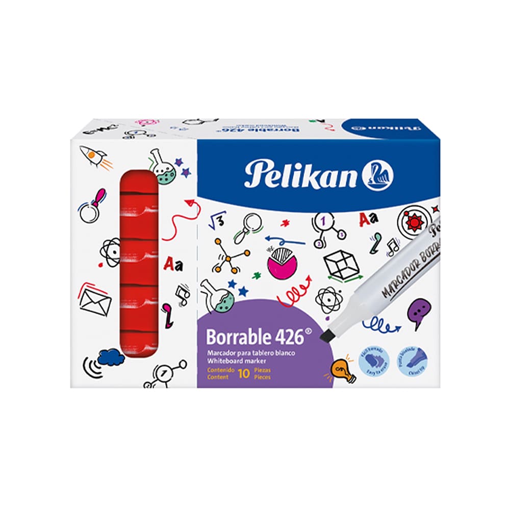 El Marcador borrable Pelikan REF 426 es el #1 para los docentes y empresas. Estos marcadores borrables son ideales para uso en superficies de acrílico, vidrio y plástico. Punta biselada indeformable con 3 anchos de línea. Su cuerpo ligero y ergonómico facilitan una mejor sujeción. Resiste al secado hasta por 48 horas sin tapa. Su tinta no mancha y es de fácil limpieza. Disponibles aquí, en papelería El Mayorista Cali.